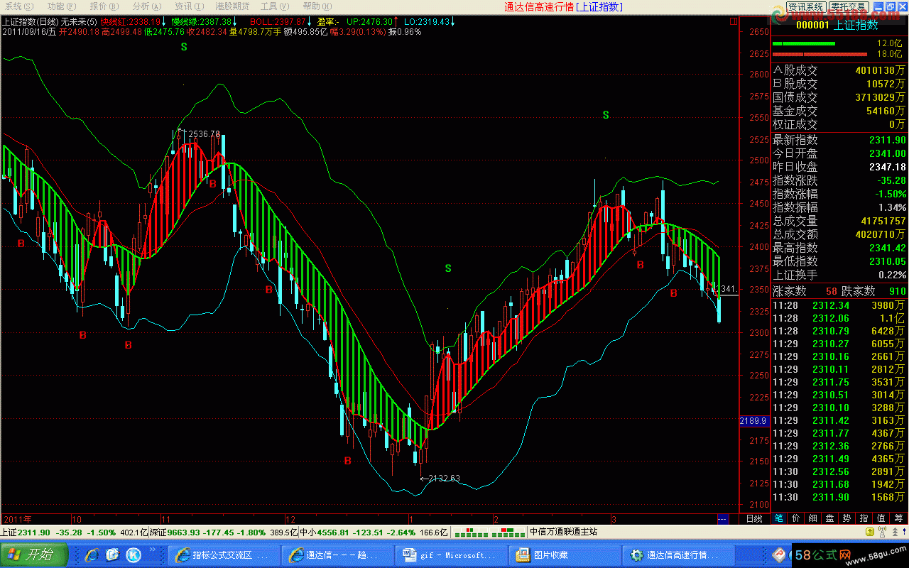 | 红色持股,绿色持币,黄色观望。指标是死的人是活的。多配合下成交量效果会更好点!~~<br/>MA5:MA(CLOSE,5),LINETHICK1,COLORFFFFFF;MA10:MA(CLOSE,10),LINETHICK1,COLOR00FFFF;<br/>MA30:MA(CLOSE,30),LINETHICK1,COLORFF |