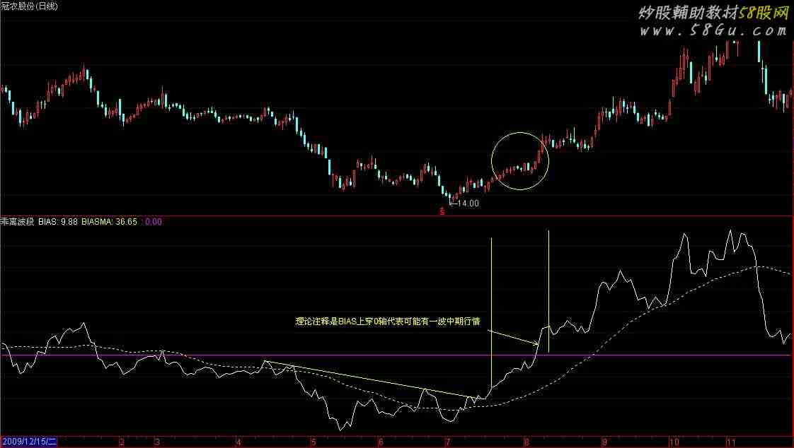 BIAS:(CLOSE-MA(CLOSE,89))/MA(CLOSE,89)*100; BIASMA:MA(BIAS,34),DOTLINE; 0; |