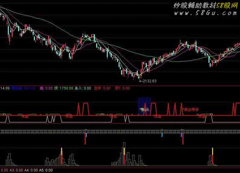 | 出现黄色信号及时买入<br/>B1:=(HHV(H,13)-C)/(HHV(H,13)-LLV(LOW,13))*100- 70;<br/>B2:=SMA(B1,13,1)+100;<br/>B3:=(C-LLV(L,13))/(HHV(H,13)- LLV(L,13))*100;<br/>B4:=SMA(B3,3,1);<br/>B5:=SMA(B4,3,1)+100;<br |