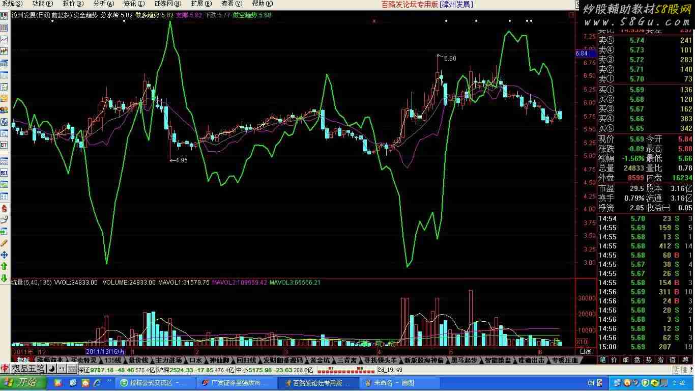 | MA5:MA(((SLOPE(C,4)*5)+C),5),COLORWHITE,LINETHICK2;<br/>MA18:=MA(((SLOPE(C,10)*5)+C),18);<br/>压力:MA(C,12)*IF(CAPITAL=0,1.035,1.12),LINETHICK1;<br/>支撑:MA(C,10)*IF(CAPITAL=0,0.965,0.92),LINETHICK1;< |