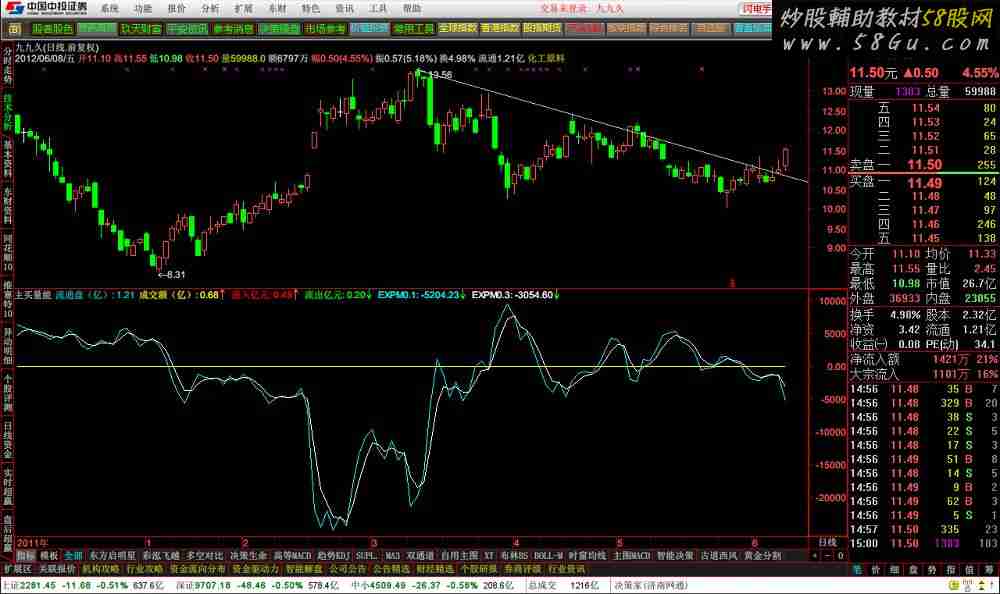 | 换手:=V*100/CAPITAL;<br/>主力:=MA(换手,4);<br/>大户:=MA(换手,9);<br/>中户:=MA(换手,17);<br/>散户:=MA(换手,34);<br/>均量:=(主力+大户+中户+散户)/4;<br/>主力能量:(主力-均量),NODRAW;<br/>大户能量:(大户-均 |