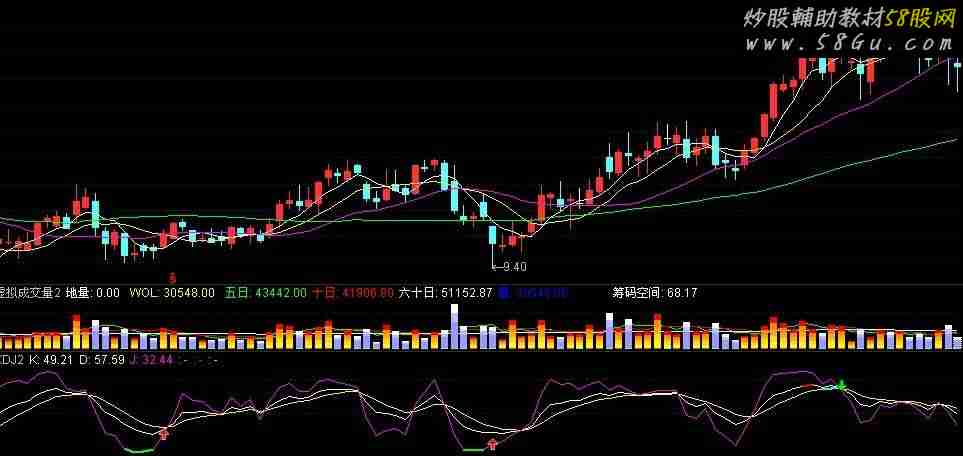 | 说明:在网上看到的指标,可以融入到自己的主图中,简单明了感觉很好,与坛友共享,无未来如有雷同望见谅。<br/><br/><img src="http://pic.58gu.com/www/88gs/com/soft/UploadPic/2012-9/20129219132610411.jpg" />A:=E |